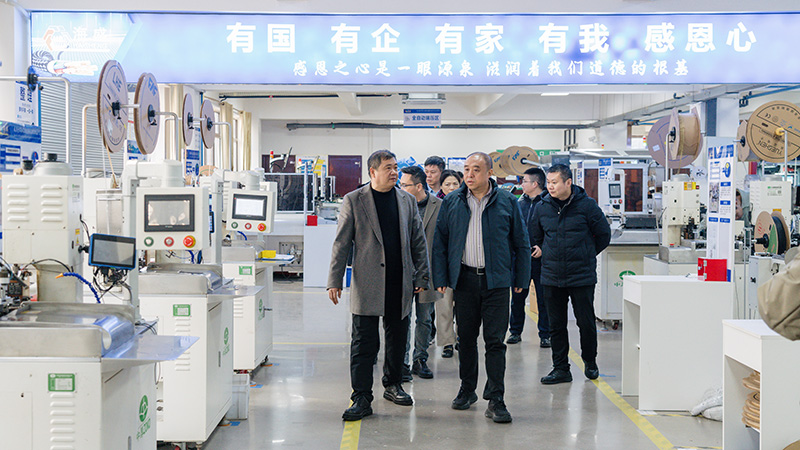 座谈会上,企业汇报了发展情况:其始创于2011年,前身1997年成立,现布局四大生产基地,2023年总产值超5亿元。2025年2月,企业6000万元投建的新能源线束生产线竣工投产,从签约到投产仅1年,达产后年产值超2亿元,可解决400余人就业。